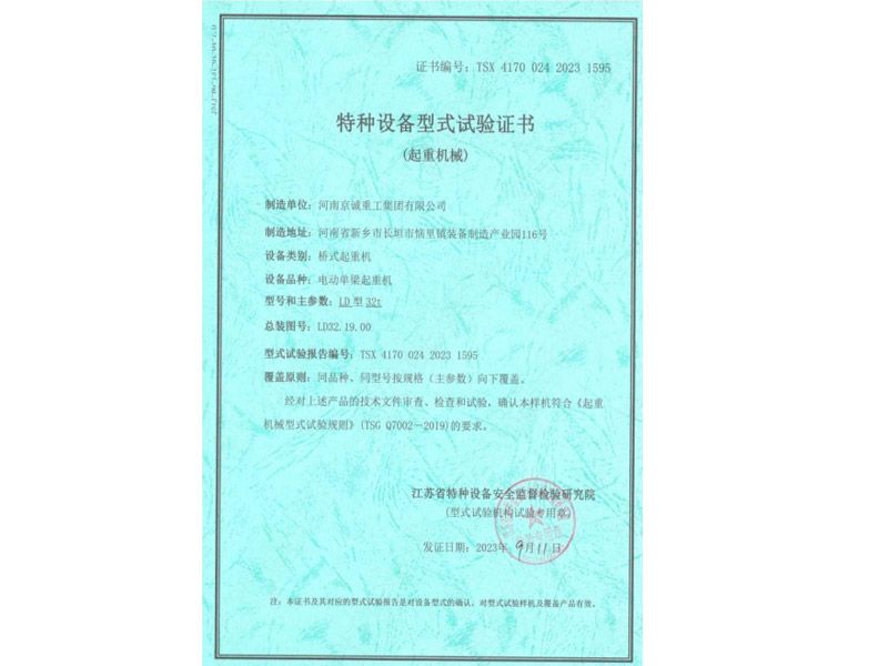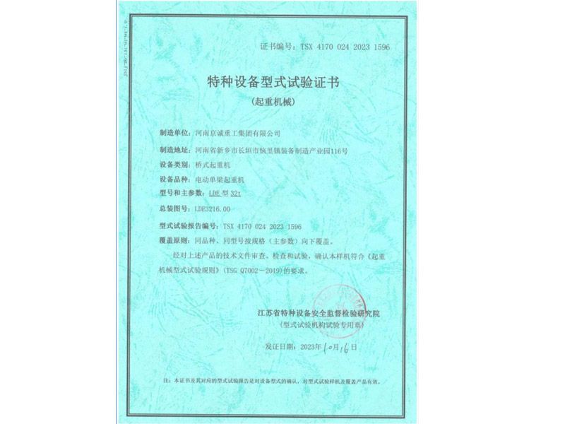 起重機(jī)械型式試驗(yàn)證書(shū)