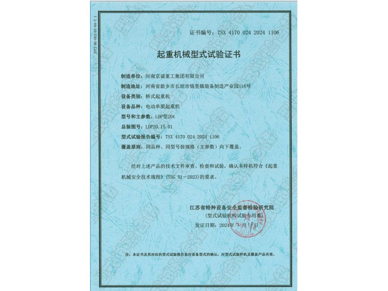 起重機(jī)械型式試驗(yàn)證書(shū)