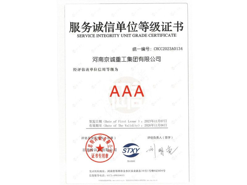 服務(wù)誠(chéng)信單位等級(jí)證書(shū)